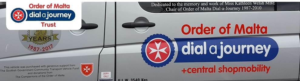 Order of Malta Dial-a-Journey Trust, 17 Munro Road, STIRLING FK7 7UU. Charity No. SC 018831. Tel: 01786 465355